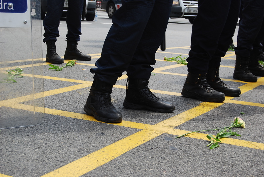 La FAVTerrassa davant del Grup d’Intervenció de la Policia municipal
