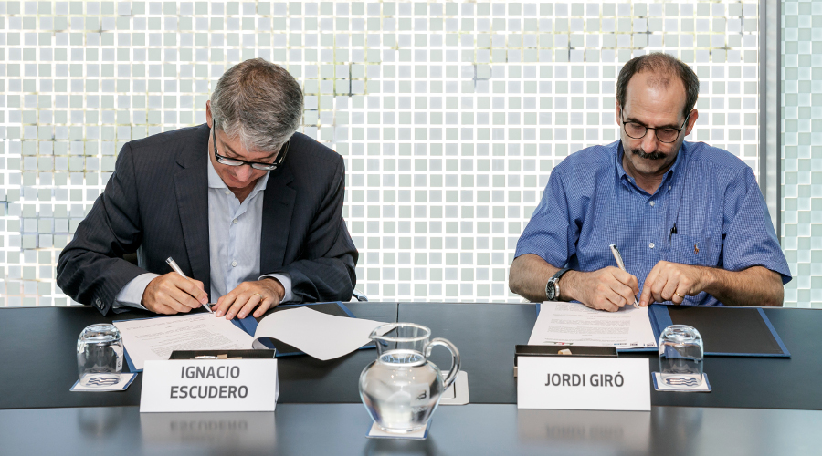 Notícia CONFAVC.- Amb l’objectiu de donar suport a la formació de joves amb recursos econòmics limitats, la Fundació CONFAVC ha signat un conveni amb la Fundació Agbar que permetrà becar un màxim de 7 joves per tal que puguin realitzar estudis universitaris. LaFundació CONFAVC  serà la a responsable d’analitzar les candidatures per determinar quines estudiants les reben a través del programa veïnal Aula Actual que treballa amb instituts d’educació secundària. Aquest és el contingut de l’acord signat entre Ignacio Escudero, en representació de la Fundació Agbar  i Jordi Giró, com a representant de la CONFAVC i la seva Fundació.