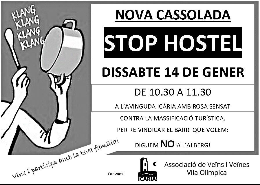Davant d’aquest fet volem denunciar la falta de acció del Govern municipal per tal de aturar definitivament aquest macro-projecte ja que hi ha vies per a fer-ho. És totalment contradictori estar en contra del projecte però no propiciar altres alternatives per aquest edifici clarament pensat i construït per oficines, on queda palès que NO és idoni per aquesta activitat turística. La massificació per les 440 places així com el seu impacte al barri i la tendència de buidatge de veïnat – processos de gentrificació- són elements suficientment importants com per fer quelcom més que justificar una situació que no s’hauria d’haver produït mai i sobre la qual el veïnat mai va estar informat malgrat demanar informacions en moltes ocasions. (Comunicat pdf).