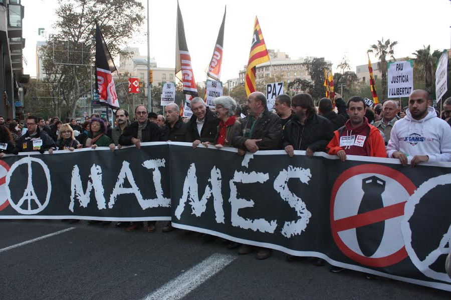 Notícia CONFAVC.- Uns 5 mil veïns i veïnes van sortir el carrer aquest dissabte a Barcelona, simultàniament a altres ciutats de la península, contra el terrorisme i també rebutjant una resposta bèl·lica per part d’Occident i la retallada de drets sota el pretext de la seguretat.